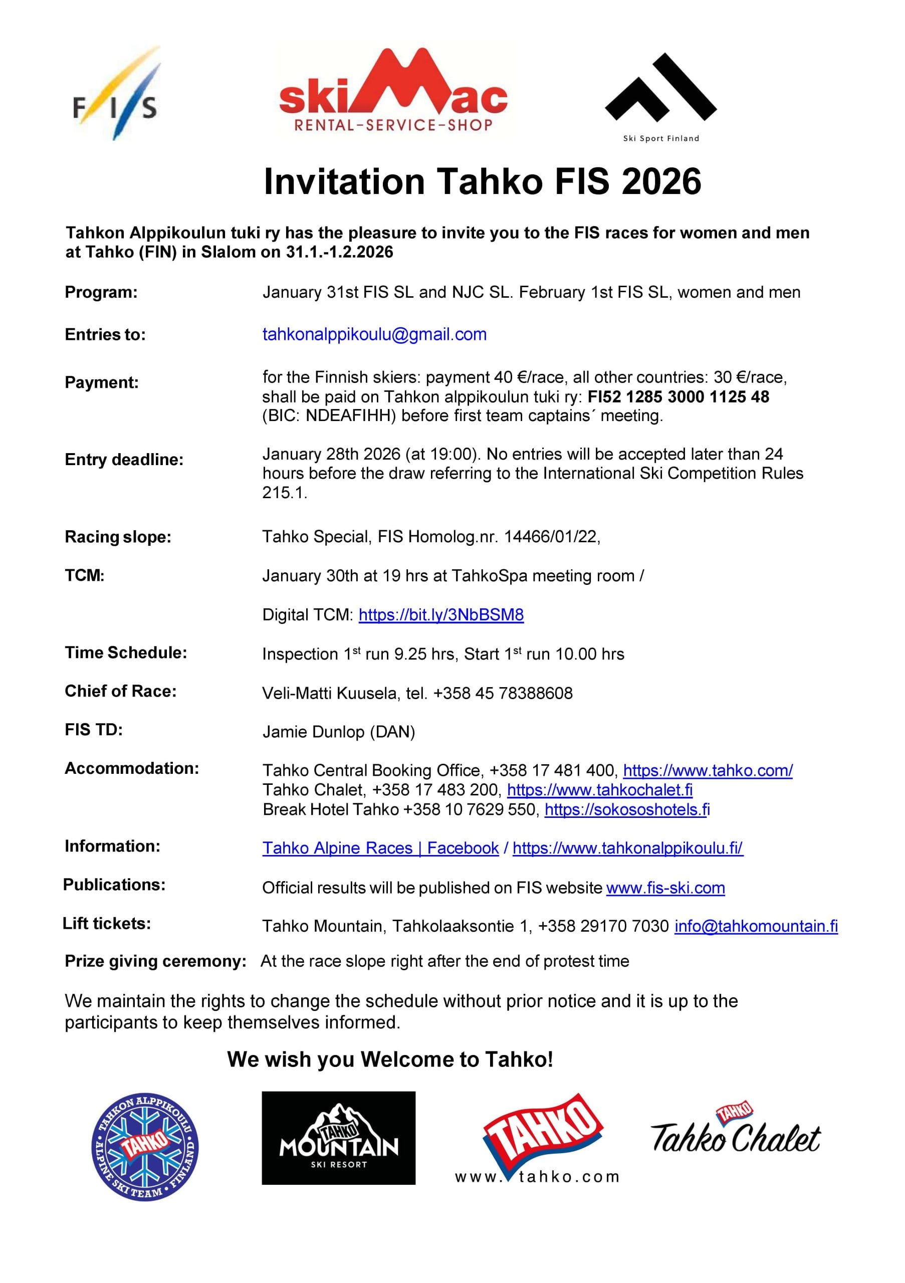 FIS | Tahko (FIN) – Event Details – Alpine Skiing